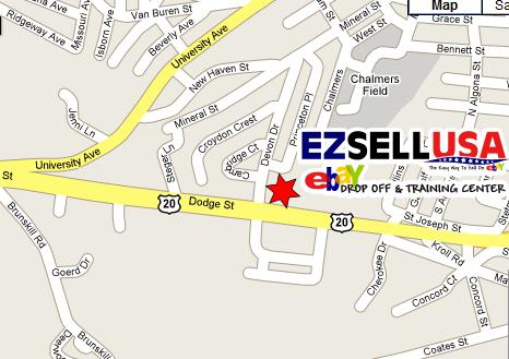 EZSELLUSA is located at 1895 JFK Road in Dubuque. Just drive around back of Choo Choo Charlie's Pizza and Rhino's Restaurant. You will see our sign and logo above the back door.